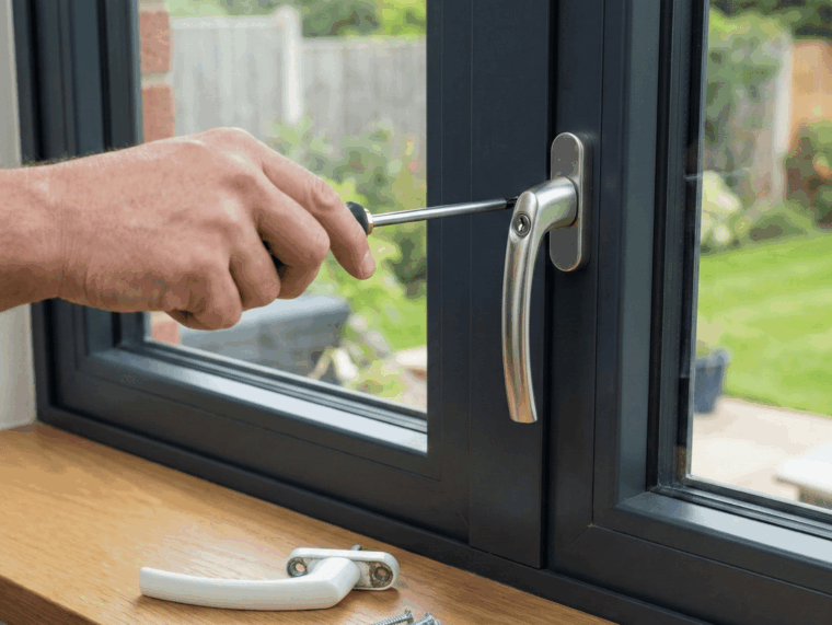 • montaż klamek i osprzętu – instalacja lub wymiana klamek, uchwytów oraz elementów sterujących;